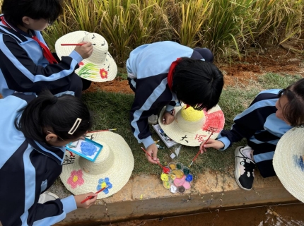 體驗的快樂和汗水激發(fā)了孩子們的興趣,水稻田旁,孩子們用豐富的色彩,在草帽上留下了自己的奇思妙想,孩子們相互交流,處處歡聲笑語,吸引了路過的游客駐足觀賞。